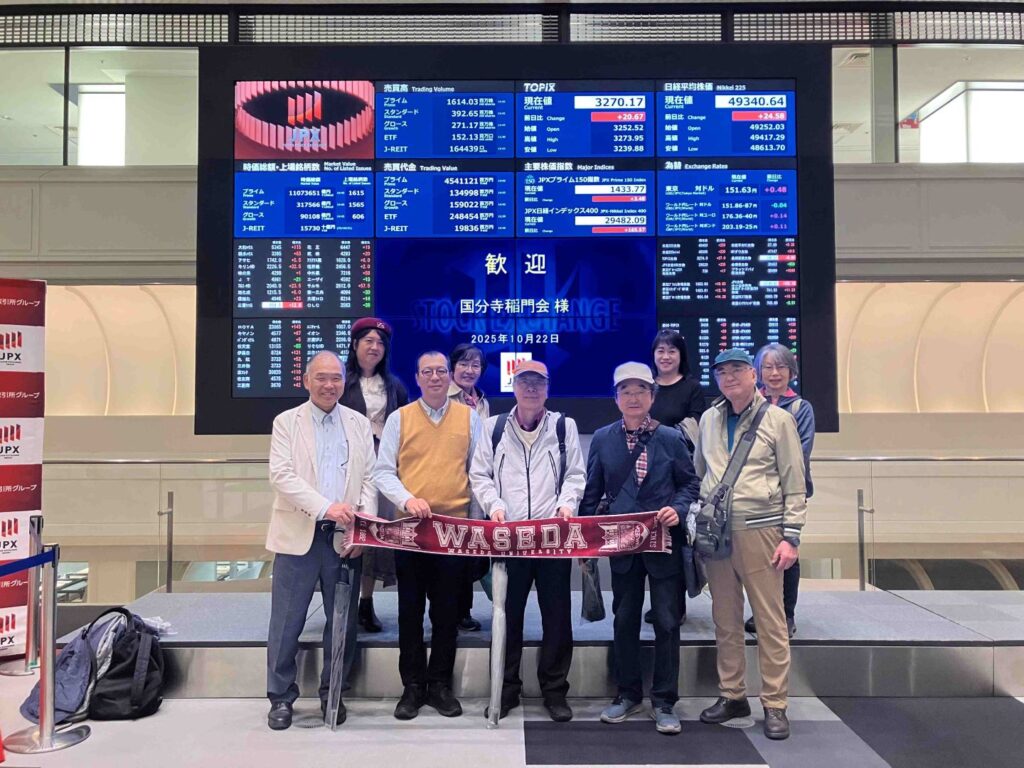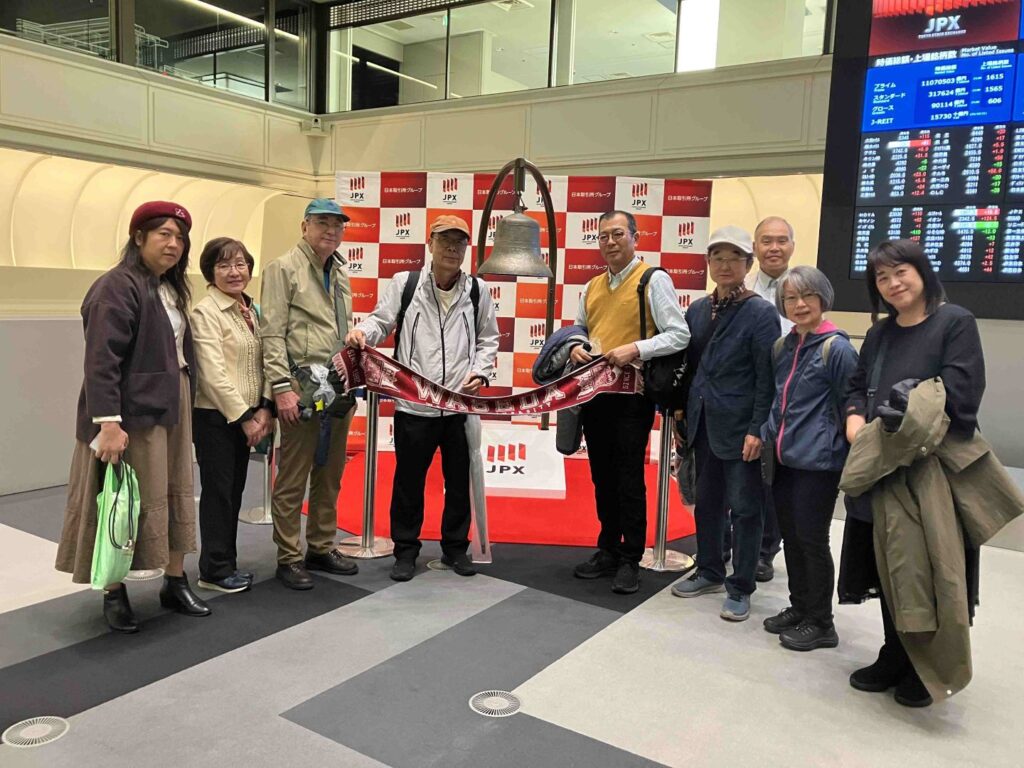 お昼はKDDIビルの下の居酒屋「北海道」で、天婦羅やホッケ定食などを堪能しました。午後からは地下鉄で東京証券取引所に移動しました。ここでも職員の方による1時間のガイドツアーを受けました。TVなどでよくみかけるクルクル回る株価ボードや上場の際に鳴らす鐘などをすぐ近くで見ることができてとても貴重な体験でした。今回、感じたことは、観光地や博物館をただなんとなく見るのではなく、ガイドの説明を受けると何倍も理解が深まり楽しめるということです。今回はおおよそ15,000歩、歩きました。
